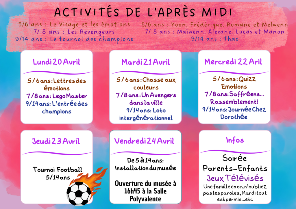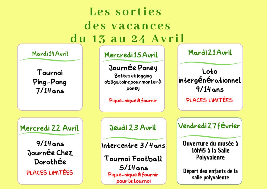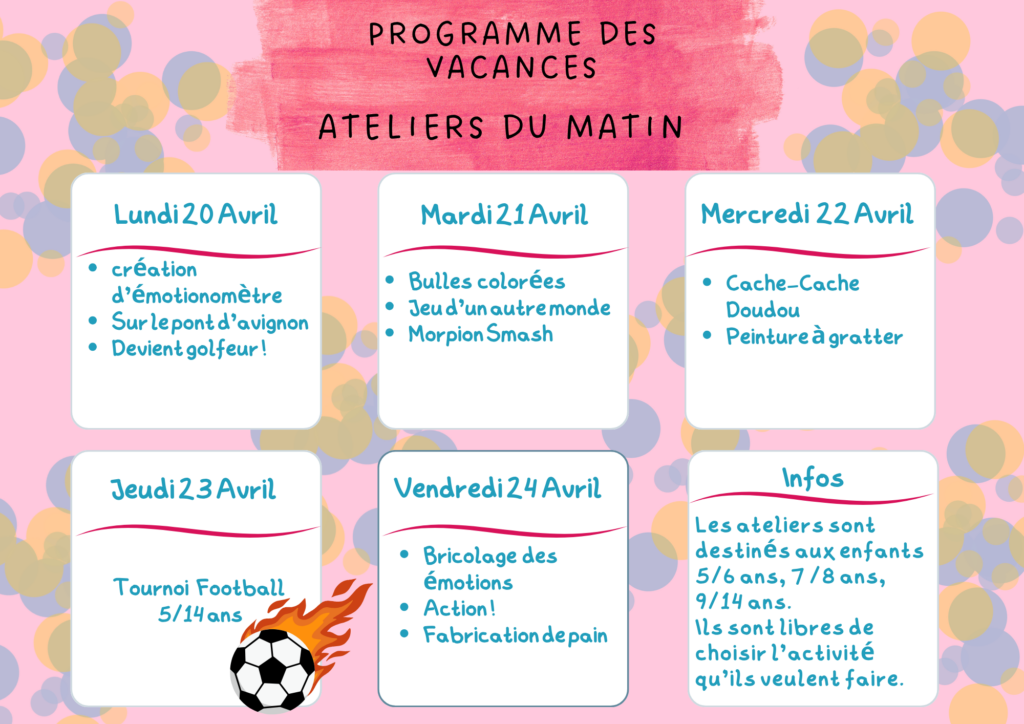 Programmes des vacances d’avril du 13 au 24